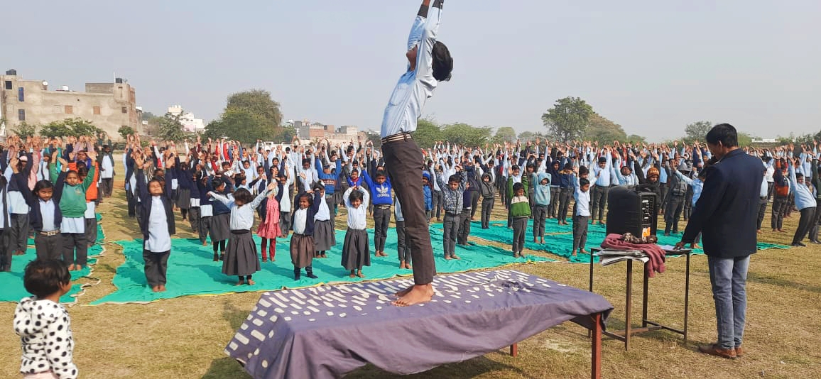 इसके तहत शारीरिक शिक्षक ओम प्रकाश मीणा के मार्गदर्शन में विद्यार्थी सूर्य नमस्कार सीख रहे हैं। इसी तरह राजकीय उच्च माध्यमिक विद्यालय दूनी में भी सूर्य नमस्कार का अभ्यास करवाया जा रहा है। इसके तहत सूर्य नमस्कार के 12 आसनों को शामिल किया गया है। सूर्य सप्तमी पर सभी विद्यार्थियों के एक साथ सूर्य नमस्कार करने पर एक विश्व रिकॉर्ड बनेगा। इस अभ्यास में सभी शिक्षक एवं विद्यार्थी भाग ले रहे हैं। सूर्य नमस्कार का अभ्यास वरिष्ठ शारीरिक शिक्षक शिवजी लाल जाट, अशोक शर्मा, दिव्यांशी जैन के निर्देशन में करवाया जा रहा है। यहां प्रधानाचार्य भंवरलाल कुम्हार ने सूर्य नमस्कार का स्वास्थ्य में महत्व एवं लाभ की जानकारी दी गई।
