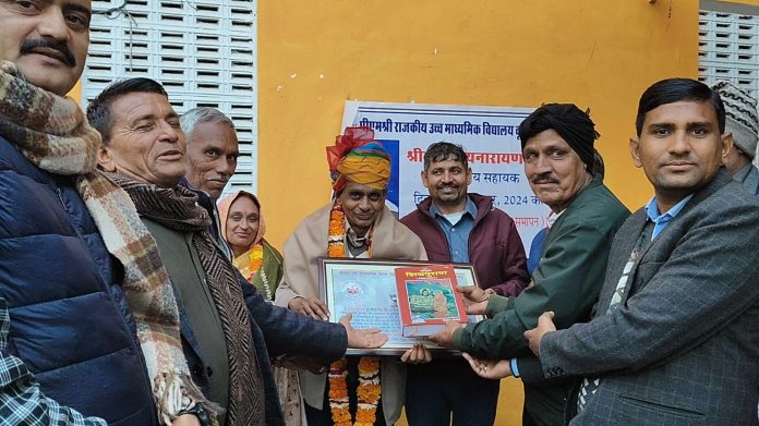 Deoli News 24 दिसंबर (दैनिक ब्यूरो नेटवर्क) दूनी स्थित पीएम श्री राजकीय उच्च माध्यमिक विद्यालय से 60 वर्ष की आयु पूरी होने पर संविदा सेवा समाप्त होने वाले पंचायत शिक्षक सत्यनारायण शर्मा निवासी अलीगढ़ को विद्यालय द्वारा मंगलवार को विदाई दी गई।
