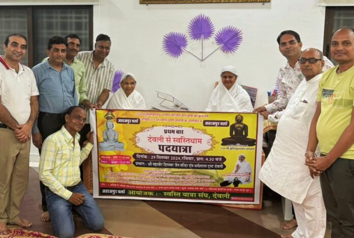 Deoli News 26 सितंबर (दैनिक ब्यूरो नेटवर्क) शहर से पहली बार जहाजपुर स्थित स्वस्तिधाम पदयात्रा आगामी 29 सितंबर को रवाना होगी। इसे लेकर पदयात्रा का पोस्टर विमोचन किया गया है।