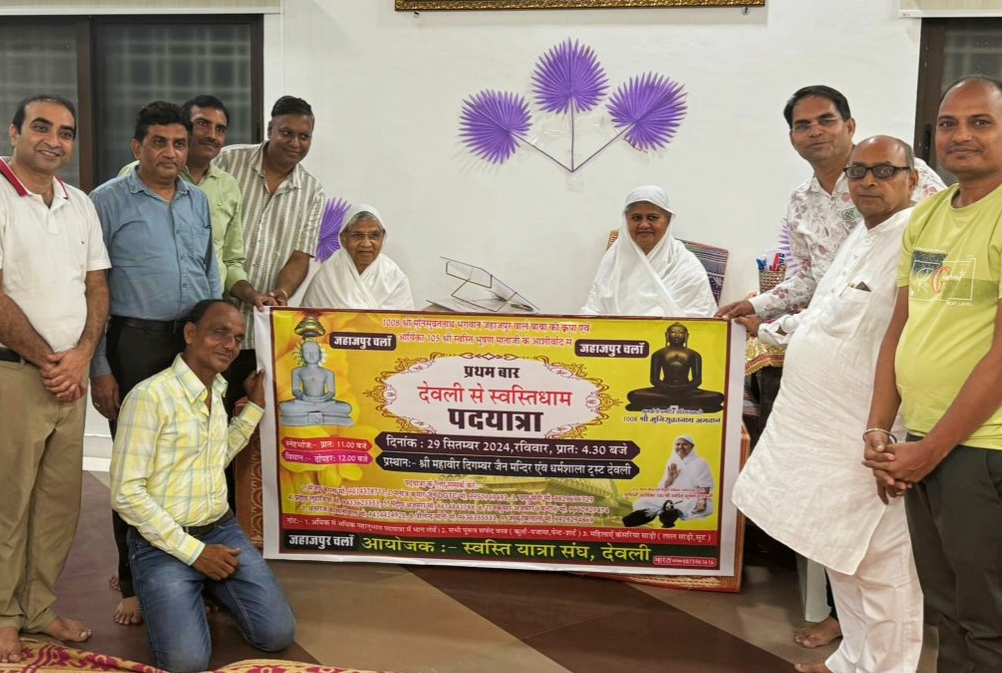 यात्रा से जुड़े मनोज जैन ने बताया कि इस दौरान स्वस्तिधाम की प्रणेता आर्यिका स्वस्तिभूषण ने पोस्टर विमोचन किया और आयोजकों को शुभकामना दी। इस मौके पर पूर्व न्यायाधीश नरेंद्र कुमार जैन, डॉ. अनंत जैन, संजय सेठी, प्रदीप जैन, धनराज जैन, जम्बू जैन समेत मौजूद थे। जिन्होंने आर्यिका को पदयात्रा की रूपरेखा बताई और आशीर्वाद लिया। यह यात्रा 29 सितंबर सुबह 4:30 बजे श्री महावीर दिगंबर जैन मंदिर एवं धर्मशाला ट्रस्ट से रवाना होगी। इस मौके पर दोपहर 12 बजे विधान आयोजित होगा। पदयात्रा के लिए पुरुष व महिला यात्रियों का ड्रेस कोड रखा गया है। पदयात्रा को लेकर तैयारियां जारी है।