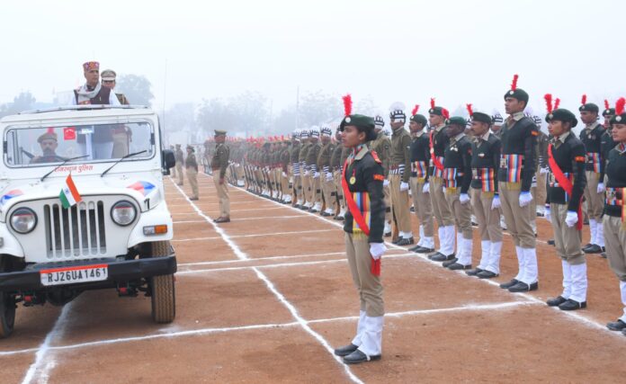 Desk News 26 जनवरी (दैनिक ब्यूरो नेटवर्क) जिले में 75 वां गणतंत्र दिवस शुक्रवार को हर्षोल्लास के साथ मनाया गया। जिला स्तरीय मुख्य समारोह पुलिस लाइन ग्राउंड में आयोजित किया गया। जहां मुख्य अतिथि जलदाय व भू-जल विभाग के मंत्री कन्हैया लाल चौधरी ने सुबह 9 बजे ध्वजारोहण किया।
