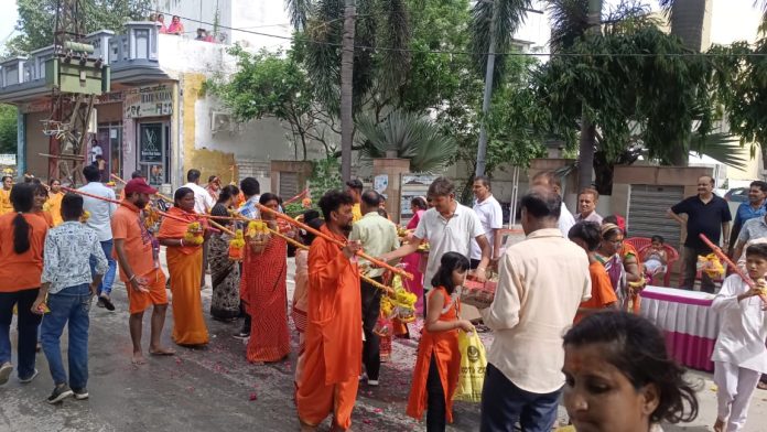यहां विधि विधान पूर्वक पूजा अर्चना के साथ कांवड सौंपी गई। बोरडा गणेश मंदिर से करीब डेढ़ सौ कांवड़िए नदी का पवित्र जल रवाना हुए, जिनका मार्ग में कई जगह पुष्प वर्षा कर एवं फलाहार कर स्वागत किया। वहीं हर हर महादेव के जयकारों के साथ कांवड़िए डीजे की धुन पर नाचते गाते चले। शहर के छतरी चौराहा, बस स्टैंड, पेट्रोल पंप चौराहे पर पहुंचे, जहां से पटेल नगर होते हुए ममता सर्कल व बंगाली कॉलोनी पहुंचकर शिव मंदिर में भगवान शिव का जलाभिषेक किया। उक्त यात्रा में भगवान शिव की सजीव झांकी भी चल रही थी।