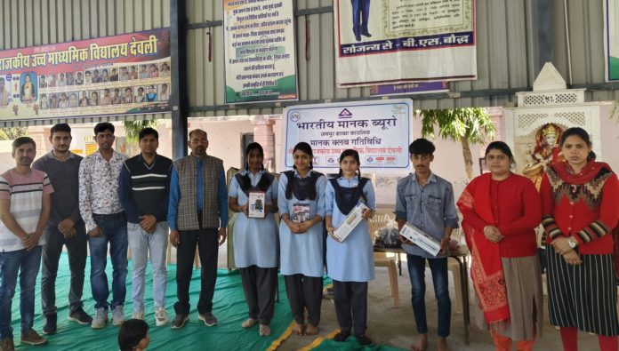 इसमें क्लब के 40 विद्यार्थियों ने भाग लिया। मानक क्लब मेंटर राजेश मीणा प्राध्यापक रसायन विज्ञान व बलवीर सिंह मीणा ने विद्यार्थियों को भारतीय मानक हॉलमार्क, आईएसआई मार्क, एचयूआईडी संख्या की जानकारी दी। प्रतियोगिता में प्रथम राशि कुमावत, द्वितीय विजय सैनी व तृतीय भावना बलाई, चतुर्थ निशा बैरवा रही। जिन्हें परितोषित प्रदान किए गए। साथ ही कार्यक्रम में विद्यालय के लियाकत अली, नोरतमल बलाई, प्रियंका अलोरिया, हेमलता मीणा, सत्यप्रकाश माहेश्वरी, मनीष कुमार चाष्टा, सुनील कुमार परिहार मौजूद थे।