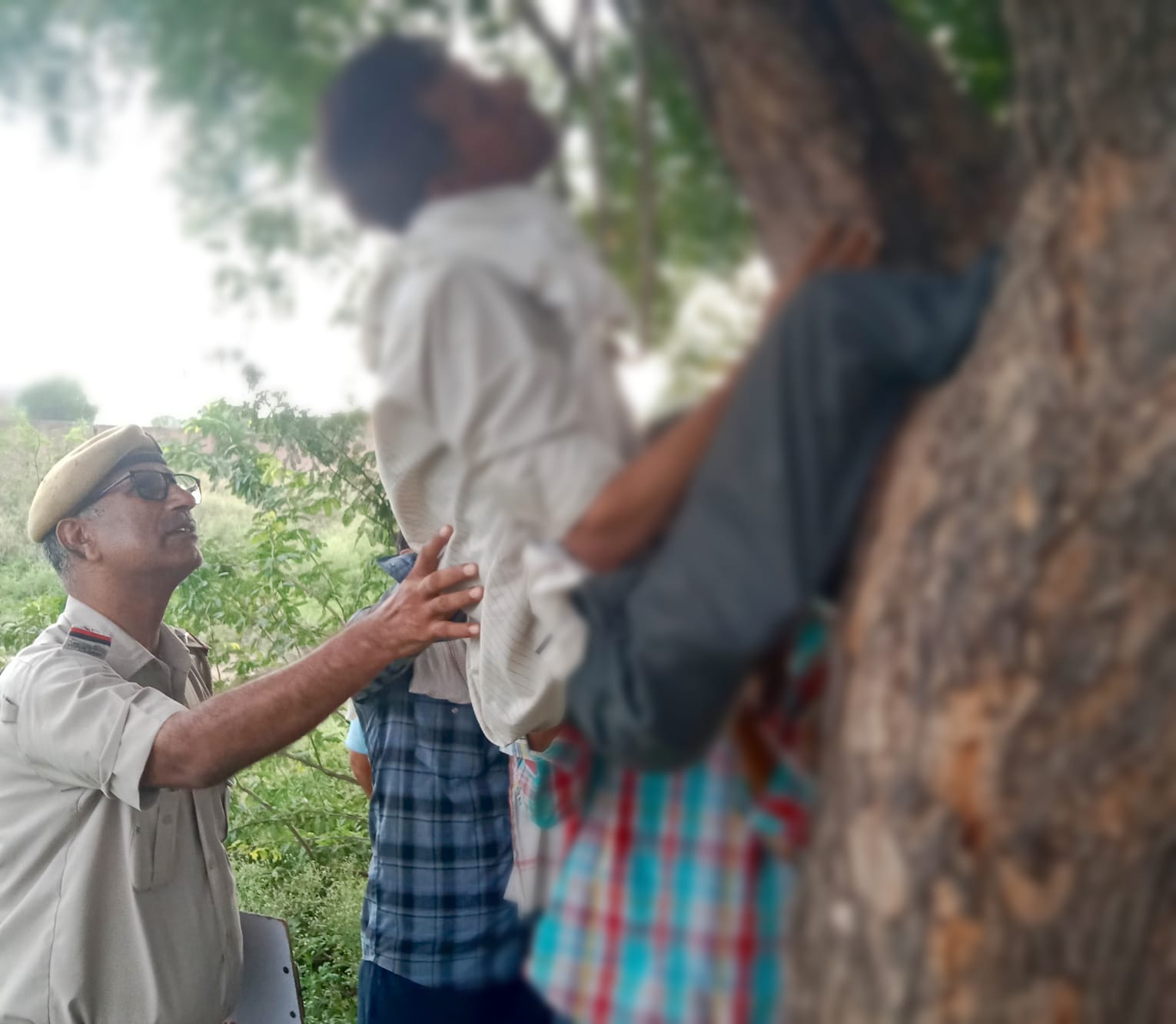 पुलिस जांच में जुटी, जबकि मौके पर शव पेड़ से लटका मिला