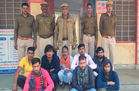 थाना प्रभारी प्रभाती लाल के अनुसार पुलिस ने भैरूलाल पुत्र बद्रीलाल गुर्जर निवासी चंदवाड़, गिरधारी पुत्र पोखर लाल मीणा निवासी खराई, दशरथ पुत्र रतिराम मीणा निवासी खराई, मैनेजर उर्फ फोरू पुत्र गिरिराज मीणा निवासी डाटुंडा, संग्राम पुत्र लालाराम मीणा निवासी जलसीना, अजय राव पुत्र बाबूलाल निवासी सरोली, कन्हैयालाल पुत्र रामलाल गुर्जर निवासी जूनिया व किशन लाल पुत्र रामदेव गुर्जर निवासी जूनिया को गिरफ्तार किया गया है। जिन्हें कार्यपालक मजिस्ट्रेट के समक्ष पेश किया जाएगा।